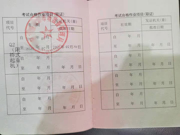 《特種設備作業證》叉車司機N1,電梯維修T,特種安全設備管理A,起重機指揮Q1,起重司機(限門座式起重機)Q2,起重司機(限橋式起重機)Q2,起重司機(限門式起重機)Q2,起重司機(限纜索式起重機)Q2,起重司機(限塔式起重機)Q2 起重司機(限流動式起重機)Q2起重司機(限升降機)Q2,觀光和觀光列出司機N2,工業鍋爐司爐G1,鍋爐水處理G3,快開門式壓力容器操作R1,移動式壓力容器充裝R2,氣瓶充裝P,(4年一審,需要到期前3個月進行)從業人員上崗證特種作業證是4年一審(需要到期前3個月進行)從事特殊工種作業人員必須熟悉相應特殊工種作業的安全知識及防范各種意外事故的技能。要求從業人員持卡上崗,即由國家安全生產監督管理局頒發《中華人民共和國特種作業操作證》方可上崗。