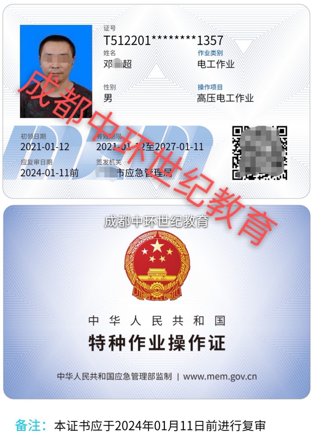 高壓電工證是從事特殊工種作業人員必須熟悉相應特殊工種作業的安全知識及防范各種意外事故的技能。要求從業人員必須持卡(IC卡)上崗,即《中華人民共和國特種作業操作證》方可上崗,此證書全國通用,新版高壓電工特種作業操作證復審是每3年復審1次。高壓電工持證上崗人員高壓電工IC卡特種工操作證和電工職業資格證。